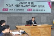 [ 한국미디어뉴스 이보영 기자 ] 오산시는 지난 5일 시청 상황실에서 ‘2026년 제3회 아동복지심의위원회 및 사례결정위원회’를 개최하고 아동 보호와 지원을 위한 주요 안건을 심의했다고 밝혔다. 이번 회의에서는 공공 중심 아동학대 대응체계의 추진 방향을 공유하고, 보호가 필요한 아동에 대한 보호조치 연장 여부의 적정성 등을 중심으로 심도 있는 논의가 이뤄졌다. 아동복지심의위원회에서는 ‘2026년 공공중심 아동학대·보호체계 종합추진계획’을 보고받고, 보호대상아동의 보호조치 연장 여부를 심의했다. 이를 통해 아동이 안정적인 보호 환경 속에서 건강하게 성장할 수 있도록 필요한 지원 방안을 검토했다. 이어 진행된 사례결정위원회에서는 아동학대 의심 사례에 대한 조사 결과를 바탕으로 학대 여부와 사례 판단을 심의하고, 피해아동 보호계획과 향후 사례관리 방향에 대해 전문적인 의견을 나눴다. 오산시는 이번 심의를 통해 아동의 안전과 권익 보호를 최우선으로 고려한 보호조치를 결정하고, 피해아동에 대한 맞춤형 보호와 지원을 지속적으로 추진해 나갈 방침이다 이권재 오산시장은 “위원회의 전문적인 심의를 통
