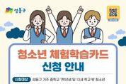 [ 한국미디어뉴스 이원영 기자 ] 서울 성동구는 청소년들에게 진로, 문화, 예술 등 다양한 체험활동 기회를 제공하기 위해 연간 최대 20만 원의 ‘청소년 체험학습카드’를 지원한다고 밝혔다. '청소년 체험학습카드 지원 사업'은 청소년들이 문화·예술·체육 분야의 다양한 체험활동을 통해 미래 역량을 강화하고, 자기주도적 성장 기반을 마련할 수 있도록 돕는 바우처 사업이다. 지원 대상은 신청일 기준 성동구에 주민등록을 둔 중학교 1학년 재학생 또는 13세 학교 밖 청소년이다. 신청 방법은 성동구청 누리집(홈페이지)에서 온라인 신청 후 승인이 완료되면 거주지 동 주민센터에서 카드를 수령하거나, 거주지 동 주민센터를 방문하여 신청 후 즉시 바우처 카드를 받을 수 있다. 상반기 신청은 3월 2일부터 6월 30일까지, 하반기 신청은 7월 1일부터 11월 15일까지 접수한다. 상반기 신청자는 자격 변동이 없는 경우 하반기에도 자동으로 지원되며, 하반기 신규 신청자가 상반기에도 성동구에 거주한 경우 상반기 지원금을 소급하여 지원한다. 신청자에게는 1인당 상·하반기 각각 10만 원씩, 연간 최대 20만 원의 바우처카