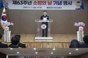 [ 한국미디어뉴스 이원영 기자 ] 서산소방서는 7일 소방서 대회의실 및 차고에서 ‘제63주년 소방의 날’ 기념행사를 개최했다고 밝혔다. ‘소방의 날’은 매년 11월 9일로 지정된 법정 기념일로, 화재 예방과 안전의식을 높이고 국민의 생명과 재산을 보호하기 위한 취지로 제정됐다. 이날 행사에는 소방공무원, 의용소방대원, 소방행정발전위원 등 100여명이 참석해 자리를 빛냈다. 1부 행사에서는 기념사와 유공자 표창이 진행됐고 장관상·청장상·도지사상·서장상 등 총41명의 소방공무원 및 민간 유공자가 표창을 받았다. 이어진 2부에서는 케이크 절단식과 오찬을 통해 소방 가족 간의 화합과 소통의 시간을 가졌다. 최장일 서산소방서장은 “오늘의 소방이 있기까지 헌신해주신 모든 소방가족과 시민 여러분께 감사드린다”며 “앞으로도 시민이 안심할 수 있는 안전한 서산 구현을 위해 최선을 다하겠다“고 말했다.