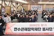 [ 한국미디어뉴스 이원영 기자 ] 연수큰재장학재단은 지난 22일 연수구 제2청사 대회의실에서 재단 설립 10주년을 맞아 ‘연수큰재장학재단 제1기 봉사단 발대식’을 열었다. 이번 발대식은 장학 지원을 받은 학생들이 지역사회에 봉사로 보답하는 선순환 구조를 확립하고, 재단의 공익적 역할과 가치를 널리 알리기 위해 마련됐다. 이날 행사는 장학생과 학부모, 지역 내 중고등학생 등 100여 명이 참석한 가운데 봉사단 깃발 수여, 봉사단 운영 방안 안내, 자원봉사자 소양 교육이 진행됐다. 지난해부터 선발된 장학생들은 3년간 의무적으로 봉사단 활동에 참여하게 되며, 제1기 봉사단은 앞으로 관내 부서와 산하기관 행사 지원, 환경정비 활동 등 다양한 자원봉사 활동을 펼칠 예정이다. 연수구 관계자는 “장학생 간 교류를 통해 함께 성장하는 미래 인재 양성이 봉사단 운영의 취지”라며 “이번 봉사단 발대식을 계기로 장학생들이 나눔과 봉사의 가치를 직접 체험하고, 지역사회에 대한 애향심을 키울 수 있길 기대한다.”라고 말했다.
