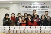 [ 한국미디어뉴스 이보영 기자 ] 수원시 팔달구 매교동 새마을부녀회는 지난 16일 연말을 맞아 매교동 행정복지센터 대회의실에서 관내 홀몸어르신 및 저소득층을 위한 ‘사랑의 떡국 나눔 행사’를 진행했다. 이날 새마을부녀회 회원들은 새해를 앞두고 따뜻한 마음을 담아 떡국 밀키트 등 음식을 정성껏 준비해 관내 홀몸어르신과 저소득층 50가구에 직접 전달하며 이웃사랑을 실천했다. 이미정 매교동 새마을부녀회장은 “정성껏 준비한 떡국이 추운 겨울을 보내는 이웃들에게 힘이 되길 바란다”며 “앞으로도 지역의 어려운 이웃들을 위한 나눔 활동을 꾸준히 이어가겠다”고 말했다. 이지효 매교동장은 “항상 지역사회를 위해 애써주시는 새마을부녀회 회원들께 감사드린다”며 “이웃들에게 전달된 따뜻한 마음이 겨울을 보내는 데 도움이 되길 바란다”고 전했다.