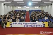 [ 한국미디어뉴스 이원영 기자 ] 전진선 양평군수는 지난 19일 용문고등학교 소강당에서 3학년 학생 140여 명을 대상으로 ‘큰 꿈을 향한 준비가 미래를 여는 힘’을 주제로 명사 특강을 진행했다. 이번 특강은 대학수학능력시험을 마치고 졸업을 앞둔 학생들에게 진로 탐색의 방향을 제시하고, 사회로 나아가는 데 필요한 용기와 동기를 부여하고자 마련됐다. 특강에서 전 군수는 자신의 삶과 공직 경험을 토대로 목표를 향해 꾸준히 나아가는 자세의 중요성을 강조하며, 더 큰 꿈을 품고 이를 실천할 수 있는 힘을 길러야 한다고 조언했다. 또한 양평의 미래 발전 방향을 소개하며, 앞으로 학생들이 다양한 분야에서 주도적인 역할을 할 수 있도록 군이 든든한 지원군이 되겠다는 뜻을 전했다. 또한 사회 초년생이 겪을 수 있는 전세사기와 보이스피싱 피해를 예방하기 위한 실생활 안전 정보를 쉽고 명확하게 전달해 학생들의 큰 호응을 얻었다. 전진선 양평군수는 “고3이라는 치열한 시간을 지나 새로운 출발선에 선 여러분이 각자의 자리에서 밝고 힘차게 성장하길 진심으로 응원한다”고 격려의 메시지를 전했다.