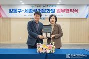 [ 한국미디어뉴스 이보영 기자 ] 서울 강동구는 지난 21일, 세종국어문화원(원장 김슬옹)과 함께 올바른 공공언어 사용을 촉진하고, 쉽고 바른 우리말 사용 문화를 확산하기 위한 협약을 체결했다고 밝혔다. 이번 협약은 양 기관이 문화체육관광부가 지원하고 (사)국어문화원연합회가 주최한 ‘2025년 국어책임관 지원 사업’에 참여하여 협의체 활동을 성공적으로 수행한 경험을 바탕으로 마련됐다. 당시 양측은 공공언어 개선 방향을 함께 모색하고, 전문적인 자문과 현장 중심의 협력을 이어가며 지속적인 협력의 필요성에 공감한 바 있다. 협약에 따라 강동구와 세종국어문화원은 2026년부터 공공언어 바로 쓰기를 위한 자문 및 교육과, 올바른 한글 사용을 촉진하기 위한 홍보 활동 등 다양한 분야에서 적극적으로 협력할 계획이다. 강동구는 이번 국어 전문기관과의 협력을 통해 공공언어의 수준을 한층 높이고, 이를 바탕으로 구정 정보에 대한 구민의 이해도와 접근성을 향상시켜 국어문화복지를 실현하는 기반을 마련할 것으로 기대하고 있다. 이수희 강동구청장은 “2026년은 훈민정음 반포 580돌이자 한글날 기념 100주년을 맞는