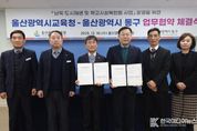 [ 한국미디어뉴스 이원영 기자 ] 울산광역시교육청과 울산동구청은 남목 도시재생 사업에 따라 동구 남목초등학교에 조성되는 공영주차장·어울림센터를 학교와 지역이 함께 사용하는 복합 공동생활(커뮤니티) 센터로 확대 개편하기로 했다. 울산교육청과 동구청은 10일 이 같은 내용을 담은 ‘남목 도시재생 사업과 학교시설 복합화 조성을 위한 변경 협약’을 맺었다. 이번 변경 협약은 2023년 9월 합의된 150면 규모 공영주차장과 학교 밖 관사 부지 어울림센터 조성을 지역과 학교가 공동 활용하는 통합형 복합시설로 재구조화하는 내용이 핵심이다. 교육청, 지자체, 학교가 협력해 교육, 돌봄, 문화 기능을 한 공간에 구축하는 ‘학교시설복합화’ 추진 목적에 맞춰 사업이 전면 재설계됐다. 변경된 계획에 따르면 기존 지하 2층 중심의 공영주차장 계획은 지하 1층부터 지상 3층까지 총면적 5,148㎡ 규모의 복합시설로 개편되며, 2027년 12월 준공 예정이다. 조성되는 시설은 102면 규모의 공영주차장, 지역주민을 위한 1, 2층 복합 공동생활 센터, 남목초등학교 전용 3층 교육시설로 구성된다.