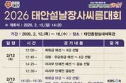 [ 한국미디어뉴스 이원영 기자 ] 태안군이 민족 대명절 설을 맞아 2월 12일부터 18일까지 태안종합실내체육관에서 ‘위더스제약 2026 태안 설날장사 씨름대회’를 개최한다. 대한씨름협회가 주최하고 태안군씨름협회가 주관하는 이번 대회는 32개 팀 291명의 선수가 참가해 모래판 위 최강자를 가린다. 군은 민족 전통 경기인 씨름을 알리고 군민과 관광객이 함께 즐기는 축제의 장을 마련할 계획이다. 대회는 12일 예선을 시작으로 13일 여자부 개인전 및 단체전 결정전이 열린다. 14일 소백장사, 15일 개회식 및 태백장사, 16일 금강장사, 17일(설날) 한라장사 결정전이 이어지며 대회 마지막 날인 18일 백두장사 결정전이 펼쳐진다. 박진감 넘치는 경기는 KBS 1TV와 KBS N SPORTS를 통해 전국에 생중계된다. 군은 많은 주민이 씨름의 묘미를 즐길 수 있도록 가로등 현수기와 전광판 등을 활용해 대회 일정을 대대적으로 홍보한다. 방문객 편의를 위해 대회 기간인 12일부터 18일까지 7일간 셔틀버스가 운행된다. 노선은 태안공영버스터미널을 출발해 다이소 앞, 우체국사거리, 이석민 피자 등을 거쳐 종합