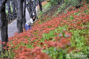 [ 한국미디어뉴스 이보영 기자 ] 울산 남구 선암호수공원이 가을을 붉게 수놓은 꽃무릇으로 물들고 있다. 남구에 따르면, 호수 산책로 4km와 축구장 옆 테마쉼터에 조성된 49만여 본의 꽃무릇은 9월 20일부터 개화해 10월 초까지 이어지며, 특히 9월 마지막 주말 절정을 맞아 가장 화려한 풍경을 만날 수 있다. 개화 후 약 열흘간 이어지는 붉은 물결은 시민들의 일상에 특별한 가을의 감동을 전한다. 남구는 2019년부터 꽃무릇을 심기 시작해 꾸준히 확장해 왔고 올해 '선암호수공원 명품둘레길 조성 사업'을 통해 약 2만 5천여 본의 꽃무릇을 추가로 심어 총 51만 5천여 본 규모의 대규모 군락지로 거듭나도록 할 예정이다. 아울러 수선화, 왜성조팝나무 등 다양한 초화류와 수목을 심고 휴게공간도 조성해 시민들이 풍성한 볼거리와 쾌적한 휴식을 즐길 수 있도록 할 계획이다. 꽃무릇은 수선화과에 속하는 여러해살이 구근식물로 본래 이름은 돌 틈에서 나오는 마늘종 모양을 닮아 '석산화(石蒜花)'라 불리며 특히 잎이 나기 전 꽃이 먼저 피는 독특한 특성으로 인해 '이루지 못할 사랑'이라는 꽃말이 유래