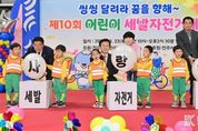 [ 한국미디어뉴스 이원영 기자 ] 진주시는 23일 진주실내체육관에서 진주시어린이집연합회(회장 김숙경) 주관으로, 시가 후원한 ‘제10회 어린이 세발자전거 대회’가 열렸다고 밝혔다. 이날 행사에는 관내 어린이집 교사와 원생 등 3,000여 명이 참여했으며, 조규일 진주시장을 비롯해 백승흥 시의회 의장, 도·시의원 등이 참석해 자리를 빛냈다. 행사 축하를 위해 참석한 내빈들은 아이들의 눈높이에 맞춰 격려사와 축사를 생략했으며, 어린이들과 함께 행사를 여는 축하 퍼포먼스를 펼치며 어린이와 어른이 함께하는 즐거운 시간을 가졌다. 이와 별도로, 식전 행사로 연령별 세발자전거 예선경기와 ‘마술공연’이 펼쳐졌으며, 본 행사에서는 5세 반 세발자전거 달리기와 6~7세 반 두발자전거 달리기 경기가 진행됐다. 또한 부대행사로 붕붕카, 에어바운스, 소방체험 등 다양한 놀이·체험이 진행되어 어린이들이 자전거와 친숙해지는 기회를 가졌다. 조규일 진주시장은 “우리 진주시의 보석 같은 어린이들이 건강한 어른으로 성장할 수 있도록 ‘아이가 행복한 진주’를 만들기 위하여 최선을 다할 것”이라고 말했다.