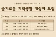 [ 한국미디어뉴스 이원영 기자 ] 용인특례시 기흥구 동백2동은 10월 14일부터 28일까지 3주간 진행하는 치매 예방 프로그램 ‘슬기로운 기억생활’ 참여자를 모집한다고 22일 밝혔다. 프로그램은 10월 14일 1차 교육인 ‘알쏭달쏭한 치매예방교육’을 시작으로 10월 21일 2차 교육인 ‘보이스피싱 예방법’이 진행된다. 3차 교육은 10월 28일 ‘힐링 레크리에이션(실버체조)’가 이어진다. 교육은 동백2동 지역사회보장협의체의 분야별 전문가 위원들의 재능 기부로 운영되며, 어르신의 인지 기능 증진과 정서적 안정, 삶의 활력 증진을 위해 기획했다. 모집 대상은 지역내 65세 이상 주민 30명이다. 신청 방법은 동 행정복지센터 방문 또는 전화를 통해 선착순 모집한다. 동백2동 관계자는 “이번 프로그램은 어르신들이 건강하고 행복한 생활을 할 수 있도록 지역사회 구성원들이 함께 한다”며 “앞으로도 지역 맞춤형 복지사업을 발굴해 주민 삶의 질 향상에 노력할 것”이라고 말했다.