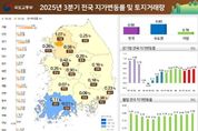 [ 한국미디어뉴스 이원영 기자 ] 국토교통부와 한국부동산원(원장 손태락)은 '25년 3분기 지가변동률 및 토지거래량을 발표했다. ★ 지가변동률 '25년 3분기 전국 지가는 0.58% 상승했다. 상승폭은 '25년 2분기(0.55%) 대비 0.03%p 확대, '24년 3분기(0.59%) 대비 0.01%p 축소된 것으로 나타났다. '25년 9월 지가변동률은 0.20%로, '25년 8월(0.19%) 대비 0.01%p, '24년 9월(0.19%) 대비 0.01%p 높은 수준으로 나타났다. (지역별) '25년 3분기 지가변동률은 수도권(0.74% → 0.80%)은 '25년 2분기 변동률 대비 높은 수준, 지방권(0.22% → 0.19%)은 낮은 수준을 보였다. (시·도) 17개 시·도 중 서울(1.07%)이 전국 평균(0.58%)을 상회했다. (시·군·구) 서울 용산구 1.96%, 서울 강남구 1.68%, 서울 서초구 1.35% 등 252개 시군구 중 40개 시군구가 전국 평균을 상회했다. 또한, 252개 시군구 중 199개 시군구가 0.00% ~ 0.80% 수준을 나타내었으며, 주