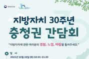 [ 한국미디어뉴스 이원영 기자 ] 행정안전부는 10월 28일 충청북도 청주시립미술관에서 민선 지방자치 30주년 충청권 간담회를 개최한다고 밝혔다. 이번 간담회는 지난 8월과 9월에 열린 강원권·경상권·수도권 간담회에 이어 열리는 네 번째 행사로, 충청권 주민과 함께 지방자치 30주년의 성과를 돌아보고 미래 방향을 논의하는 자리이다. 충청권 간담회는 청년센터, 청년정책협의체 등 충청권에서 활동하는 청년을 포함한 주민 50여 명이 참석해 미래세대의 목소리가 중심이 되는 지방자치 소통의 장이 될 것으로 기대된다. 간담회에서는 ▲주민 참여 활성화, ▲주민 체감형 행정서비스, ▲자치분권 실현, ▲지방의회의 역할 등을 주제로, 청년들이 지방자치 현장에서 직접 경험한 사례를 공유하고, 지역 현안 등에 대한 다양한 의견을 나눌 예정이다. 아울러 현장에서는 지방자치 퀴즈, ‘다음 30년, 내가 바라는 지방자치는 (네모)다’ 등 이벤트와 모바일 실시간 의견 수렴 방식을 통해 참여자 누구나 자유롭게 의견을 제시할 수 있다. 행정안전부, 충청북도는 간담회를 통해 청취한 의견을 바탕으로 민선 지방자치 3
