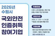 [ 한국미디어뉴스 김일규 기자 ] 수원특례시가 관내 중소기업이 국외 안전인증 취득하는 데 소요되는 비용을 지원한다. 수원시는 24일까지 ‘2026년 국외 규격인증 취득 지원사업’에 참가할 창업·중소·제조기업 8개 업체를 모집한다. 인증비·시험비·컨설팅비 등 안전인증 취득에 필요한 총비용의 80%를 실비로 지원한다. 기업당 최대 2개 제품의 인증 취득을 지원하고, 지원 한도는 기업당 440만 원이다. 지원 분야는 미국 안전인증(UL·FCC·FDA), 유럽 안전인증(CE) 등 436개 규격이다. 제품안전인증이 아닌 아이에스오(ISO) 인증은 제외된다. 수원시 관계자는 “중소제조기업에게는 국외 안전인증을 취득하는 과정이 수출 장벽처럼 느껴질 정도로 쉽지 않다”며 “기업이 교역 대상국의 안전 규제에 선제적으로 대응할 수 있도록, 국외 안전인증 취득을 지원하겠다”고 말했다.