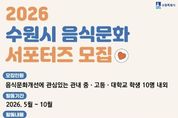 [ 한국미디어뉴스 김일규 기자 ] 수원특례시는 ‘2026년 음식문화 서포터즈’로 활동할 중·고등·대학생을 4월 17일까지 모집한다. 음식문화 서포터즈는 단순 홍보를 넘어 시민이 참여하고 실천하는 활동으로 건강한 음식문화를 확산하는 역할을 맡는다. 온라인과 현장을 연계해 다양한 방식으로 시민과 소통하는 활동을 한다. ▲음식문화 개선, 수원음식축제 관련 온라인 홍보 콘텐츠 제작 ▲사회관계망서비스 공유 ▲수원음식축제 운영 지원 등 활동을 한다. 참여자는 활동 기간에 다양한 현장 경험을 쌓고 지역 축제 운영에도 참여한다. 음식문화 개선에 관심 있는 관내 중·고등·대학교 학생이 신청할 수 있다. 10명 내외를 선발한다. 선발된 서포터즈는 5월부터 10월까지 활동한다. 참여를 희망하는 학생은 수원시 홈페이지 ‘공고/고시/입법예고’ 게시판에서 신청서를 내려받아 작성한 후 전자우편으로 제출하면 된다. 자세한 사항은 공고문에서 확인할 수 있다. 활동자에게는 위촉장과 활동 인증서를 발급하고, 우수 활동자에게는 수원특례시장 표창을 수여한다. 자원봉사 시간도 부여할 예정이다. 수원시 관계자는