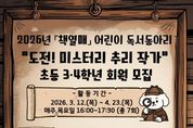 [ 한국미디어뉴스 이원영 기자 ] 인천광역시교육청주안도서관은 오는 23일부터 초등 3~4학년 학생을 대상으로 ‘책열매’ 독서동아리 회원을 모집한다. ‘도전! 미스터리 추리 작가’를 주제로 한 이번 프로그램은 어린이가 독서지도 전문 강사의 지도 아래 꾸준한 독서 습관을 기르고, 또래 친구들과 책으로 소통하는 경험을 쌓을 수 있도록 마련했다. 프로그램은 매주 미스터리 주제의 다양한 책을 읽고 수수께끼 만들기, 탐정일지 쓰기, 같은 시작 다른 결론, 뒷이야기 쓰기 등의 활동을 하며, 학생들이 직접 추리 동화를 창작하는 과정으로 3월 12일부터 4월 23일까지 운영한다. 모집은 2월 23일 오전 10시부터 주안도서관 누리집에서 선착순 진행하며, 자세한 내용은 주안도서관 누리집을 확인하거나 어린이자료실로 문의하면 된다.