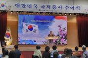[ 한국미디어뉴스 김서안 기자 ] 법무부 양주출입국·외국인사무소는 2025. 9. 25. 관내‘경기섬유지원센터 컨벤션홀’에서 양주시 등 경기 북부지역에 거주하고 있는 귀화자 및 국적회복자 57명을 대상으로 국적증서 수여식을 개최했다. 2018. 12. 20. 국적법 개정에 따라 법무부장관 앞에서 하던 국민선서와 국적증서 수여는 귀화자 및 국적회복자 거주 지역별 출입국·외국인관서에서 시행하고 있다 이번 국적증서 수여식은 대한민국 국민이 되어 첫 번째로 맞이하게 될 ‘추석’ 민속명절의 의미를 되새기고, 한국 사회에서 소속감과 자긍심을 가지고 살아갈 수 있도록 격려하고 축하하는 뜻깊은 장이 됐다. 이날 행사는 △대통령 축하영상 시청, △귀화자 등 국민선서 및 국적증서 수여, △기관장 축사, △ 국적취득 대표자의 소감 발표 순으로 진행됐다 김용규 소장은 축사를 통해 쉽지 않은 과정을 거쳐 대한민국 국민으로서 사회 구성원이 된 국적 취득자에게 권리뿐만 아니라 책임과 의무의 막중함을 강조하면서 다양한 문화적 배경과 경험을 바탕으로 서로 간에 이해와 화합을 증진하는데 노력해 주기를 당부했다 또한,