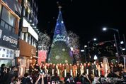[ 한국미디어뉴스 이보영 기자 ] 울산 중구가 11월 28일 오후 6시 30분 성남동 문화의거리 옛 울산초등학교 앞에서 성탄절 나무(크리스마스 트리) 및 경관조명 점등식을 개최했다. 이번 행사에는 김영길 중구청장과 박경흠 중구의회 의장, 박성민 국회의원, 시·구의원, 지역 주민 등 150여 명이 함께했다. 이날 행사는 △식전 공연 △대형 성탄절 나무(크리스마스 트리) 조형물 점등 △기념사 △축사 △축하공연 △조형물 관람 순으로 진행됐다. 중구는 연말을 맞아 희망찬 분위기를 조성하고 성남동 원도심 상권을 활성화하고자 ‘따뜻한 겨울빛으로 물든 거리’라는 주제로, 문화의거리와 젊음의거리 등에 다양한 경관조명을 설치했다. 옛 울산초등학교 앞~시계탑사거리~보세거리 입구 구간에는 대형 성탄절 나무(크리스마스 트리)와 종·황금 구름·산타 모자 모양 조형물, 불빛 조명 시설(루미나리에) 등을 설치했다. 젊음의거리에는 네온 거울 사진 촬영 구역(미러 포토존)과 사랑표·선물 상자 모양 조형물 등을 세웠다. 특별히 올해는 옛 울산초등학교 삼거리 외곽 도로변에 별똥별이 떨어지는 듯한 형태의 은