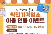 [ 한국미디어뉴스 김서안 기자 ] 아산시가 오는 11월 1일부터 11월 30일까지 한 달간 착한가격업소 이용 인증 이벤트를 추진한다. 이번 이벤트는 11월 30일 종료되는 ‘민생회복 소비쿠폰’ 사용 기간에 맞춰 시민이 체감할 수 있는 소비 활성화 분위기를 이어가고, 지역 소상공인과의 상생을 도모하기 위해 마련됐다. 참여 방법은 아산시 내 착한가격업소를 이용한 후 영수증을 수령해 시가 운영하는 네이버폼 인증 페이지에 영수증 사진을 게시(업로드)하고, 아산시 공식 인스타그램 이벤트 게시물에 ‘인증 완료’ 댓글을 작성하면 참여가 완료된다. 인증이 확인된 선착순 50명에게는 아산페이 1만 원이 지급된다. 유종희 아산시 지역경제과장은 “이번 이벤트를 통해 시민이 직접 참여하며 지역경제 선순환의 주체가 되는 계기를 마련할 것”이라며 “아산페이를 통한 지역화폐 결제 확대와 합리적 소비문화 확산에 기여할 것으로 기대한다”고 밝혔다. 또한, 시는 “민생회복 소비쿠폰은 11월 30일 사용이 종료되며, 이후에는 사용이 불가능하다”며 “기한 내 적극적인 사용으로 지역 소비 활성화에 동참해 달라”고 당부했다