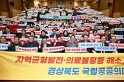 [ 한국미디어뉴스 이보영 기자 ] 지난 12월 17일 국회의원회관 대회의실에서 김형동 국회의원과 임미애 국회의원이 공동 주최한 ‘경상북도 국립․공공의대 설립 국회토론회’가 열렸다. 이날 토론회에는 이철우 경상북도지사, 권기창 안동시장 등 지자체 주요 인사와 경상북도 국립의과대학 설립 범시도민단을 포함한 시민단체 관계자 등 약 450명이 참석해 경북 지역 의료 여건과 국립의과대학 설립 필요성에 대한 논의를 이어갔다. 또한 권오을 국가보훈부 장관, 김도읍 국민의힘 정책위원회 의장, 김영호 더불어민주당 교육위원회 위원장 등 여야 의원 30여 명이 참석해 경북 국립의대 설립에 대한 관심을 보였다. 1부 개회식에서는 참석자들이 ‘경북 도민의 염원, 국립․공공의대 설립’이라는 문구가 적힌 손팻말을 들고 지역 의료 현안에 대한 공감의 뜻을 함께 표현했다. 2부에서는 유천 국립목포대 의과대학설립추진단 부단장이 ‘전남 국립의대 설립 현황 및 계획’을, 정태주 국립경국대학교 총장이 ‘경북도 국립․공공의대 설립의 필요성과 추진 방향’을 주제로 발표했다. 이어진 토론에서는 정태주 총장이 좌장을 맡고 김윤