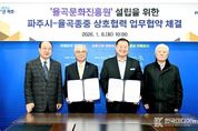 [ 한국미디어뉴스 이원희 기자 ] 파주시가 율곡 이이 선생의 학문과 철학을 체계적으로 계승하기 위해 추진 중인 ‘율곡문화진흥원’설립을 위해 지난 6일 율곡 선생의 후손인 덕수 이씨 종중과 업무협약을 체결했다. 파주시장 접견실에서 치러진 이날 협약식 현장에는 김경일 파주시장을 비롯한 파주시 관계자들과 덕수 이씨 대종회, 덕수 이씨 찬성공파 종회를 대표하는 인사와 율곡 선생의 종손이 참석해 율곡문화진흥원 설립 추진을 위한 상호 간 협력을 다짐했다. 협약의 주요 내용으로는 율곡문화진흥원 건립부지 확보 상호협조, 율곡문화진흥원 설립 기본계획 및 추진방향에 대한 협력, 율곡이이 선생 관련 종중 보유 역사·문화자료 제공, 사업 추진에 필요한 협력체계 구축 등이다. 김경일 파주시장은 “이번 협약은 율곡 선생의 정신을 현대적으로 계승하고, 파주시를 대표하는 역사·문화 자산을 체계적으로 발전시키는 중요한 출발점”이라고 강조하며 “율곡문화진흥원이 학술과 교육, 문화가 융합된 거점시설로 자리매김할 수 있도록 율곡 종중과의 협력에 최선을 다하겠다”라고 말했다. 율곡 종중 관계자 역시 “율곡 선생의 사상과 업적이 올바르