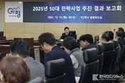 [ 한국미디어뉴스 김서안 기자 ] 가평군은 15일 ‘2025년 50대 전략사업 추진 결과 보고회’를 열고, 올해 추진한 주요 현안과 역점·공략사업의 성과를 종합적으로 점검했다. 이날 보고회에는 서태원 가평군수를 비롯해 부군수와 국장, 전 부서장이 참석해 2025년 전략사업 추진 성과와 함께 보완이 필요한 사항을 공유했다. 2025년 전략사업은 민선8기 비전인 ‘자연을 경제로 꽃 피우는 도시, 가평’ 실현에 초점을 맞춰 지역경제 활성화와 미래 성장 기반 조성, 정주 여건 개선을 목표로 선정해 관리해 왔다. 이날 보고회에서는 △미·영연방 관광안보공원 조성사업 △연인산 다목적캠핑장 반려동물 동반 시설 개선 △청평 폐철길 둘레길 조성 △가평군 노인복지회관 신축 △유기동물보호센터 신축 △평생학습관 건립 등 추진 과정에서 문제점이 있거나 보완이 필요한 사업들이 중점적으로 논의됐다. 서태원 군수는 “2025년은 민선8기의 사실상 마지막 해로, 군민과 약속한 핵심 사업들이 마무리 단계에 접어드는 중요한 시기”라며 “군민과의 소통을 바탕으로 군정의 완성도를 한층 높이고, 가평군이 한 단계 더 도약할 수 있도록 최선을 다하겠다