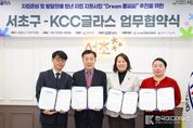 [ 한국미디어뉴스 이보영 기자 ] 서울 서초구가 11일 서초구청에서 ㈜케이씨씨글라스(대표 정몽익)와 자립준비 및 발달장애 청년의 자립역량 강화를 위한 ‘Dream 홈씨씨’ 업무협약을 체결했다고 밝혔다. 이번 협약식에는 전성수 서초구청장과 ㈜케이씨씨글라스 김태욱 상무를 비롯해 반포종합사회복지관, 방배아트유스센터 등 협업기관 관계자들이 참석해 민·관 협력 기반의 청년 자립 지원을 확대하는 데 뜻을 모았다. ‘Dream 홈씨씨’는 올해로 4년 차를 맞은 자립 지원 프로그램으로, 자립준비청년과 복지 사각지대에 놓인 청년을 대상으로 자립 생활에 대한 교육과 자립 활동 기회를 제공해 건강한 성장과 홀로서기를 돕는 사업이다. ㈜케이씨씨글라스가 사업비 5천만 원을 후원하고 서초구와 민간 협업기관이 함께 사업을 운영하는 민관 협력 방식으로 진행된다. 프로그램은 ▲자립 기반 형성과 취·창업을 돕는 ‘청년 드림·케어 프로젝트 ▲발달장애 청년의 통합형 자립 준비를 지원하는 ‘발달장애 청년 자립강화 프로젝트’ ▲참여 청년들의 관계망과 지지체계를 다지는 ‘네트워크’로 구성해 운영된다. 특히 올해부터 새로 추진되는 발달장애