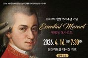 [ 한국미디어뉴스 이원영 기자 ] 서울 용산구가 오는 16일 오후 7시 30분, 용산아트홀 대극장 미르(녹사평대로 150, 지하 2층)에서 클래식 공연 ‘에센셜(Essential) 모차르트’를 개최한다. 구민의 문화예술 향유 기회를 확대하고 지역 문화의 활력을 높이기 위해 마련한 자리다. 이번 공연은 서울문화재단 공연장 상주단체 육성지원 사업의 일환으로, 용산구와 용산문화재단(이사장 임형주), 트리니티이앤엠이 공동 주최‧주관한다. 무대는 2026년 모차르트 탄생 270주년을 기념해 그의 대표 작품들로 꾸렸다. 연주 프로그램에는 ▲작은별 변주곡 ▲교향곡 제41번 ‘주피터’ ▲오페라 ‘마술피리’ 중 밤의 여왕 아리아 ▲바이올린 협주곡 제5번 등이 포함됐다. 친숙한 선율과 화려한 기교, 웅장한 관현악(오케스트라) 음향이 어우러져 모차르트 음악의 폭넓은 매력을 전할 예정이다. 연주는 지휘자 정치용이 이끄는 ‘트리니티필하모닉오케스트라’가 선보인다. ▲바이올리니스트 강유경 ▲소프라노 이미영 ▲플루티스트 오아라가 협연자로 함께한다. 780여 석 규모 전 좌석 무료로 열리며 별도의 사전 신청 없이 선착순 입장으