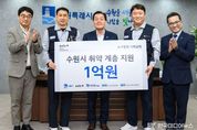 [ 한국미디어뉴스 이보영 기자 ] 기아(주) 노사가 “수원시 취약계층 지원에 사용해달라”며 1억 원을 한국사회복지협의회에 기탁했다. 기부금은 수원시사회복지협의회를 통해 수원시 복지사각지대와 취약계층 지원에 사용될 예정이다. 12월 31일 수원시청 시장 집무실에서 열린 기부금 전달식에는 이재준 수원시장, 하임봉 전국금속노동조합 기아자동차지부장, 장명찬 수원시사회복지협의회장 등이 참석했다. 이재준 수원시장은 “수원시 지역사회에 관심을 가지고 따뜻한 나눔을 실천해 주셔서 감사드린다”며 “수원시사회복지협의회와 함께 도움이 필요한 곳에 소중한 마음을 잘 전달하겠다”고 말했다.