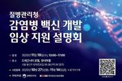 [ 한국미디어뉴스 이원영 기자 ] 질병관리청 국립보건연구원(원장 직무대리 김원호)은 mRNA 등 백신 개발을 위한 협력과 지원 방안을 공유하기 위한 '백신 개발 임상 지원 설명회'를 개최한다. 이번 설명회에서는 산·학·연·병 및 임상 전문가를 대상으로 정부의 백신 임상시험 지원 사항을 안내하고, 임상시험 시의 고려사항에 대하여 논의한다. 질병관리청은 감염병 백신 개발을 위한 (비)임상 시험 분석을 지원하기 위하여 노력해왔으며, 민간의 백신개발 현황 및 수요를 적극 파악하여 백신 연구개발 실용화를 지원해왔다. 이번 설명회에서는 질병관리청의 팬데믹 대비 정부의 백신 개발 지원 사업❶ 설명(김미영 mRNA백신개발총괄팀장)을 시작으로, 백신 임상시험의 신속 대응 전략에 대한 발표(LSK 나현희 본부장)가 이어진다. 이어서 임상시험 검체분석기관 네트워크 구축❷(심병식 국제백신연구소 수석연구원)에 대한 발표와 질의·응답을 진행한다. 코로나19 mRNA 백신 팬데믹 경험과 고위험군 임상 고려사항(고재훈 삼성서울병원 교수), 백신 임상 시 고려사항 및 규제 지원(식품의약안전처 이연희 연구관), 감염