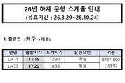 [ 한국미디어뉴스 이원영 기자 ] 원주공항의 2026년 하계(3월 29일∼10월 24일) 제주 항공편이 동계와 같이 오전·오후 시간대 편성으로 유지된다. 원주공항에 취항한 진에어의 하계 항공기 운항 일정이 국토교통부의 최종 승인으로 확정됨에 따라, 이전과 같이 오전·오후 시간대 편성이 유지되며 출발시간만 일부 변경된다. 3월 29일부터 원주공항에서 출발하는 제주행 항공편은 종전 오전 11시 10분·오후 4시 35분에서 오전 11시 15분·오후 5시 20분으로 변경되며, 제주에서 원주공항으로 돌아오는 항공편은 종전 오전 9시 5분·오후 2시 30분에서 오전 9시 5분·오후 3시 20분으로 조정된다. 한편 2025년 원주공항을 이용한 탑승객 수는 20만 1,916명으로, 2023년부터 3년 연속 20만 명을 돌파하고 있다. 탑승률 또한 2021년부터 2025년까지 57.7%→73%→78.8%→78.9%→77.1%를 기록하며 80%에 근접하는 추세를 보였다. 원강수 원주시장은 “원주공항의 구조적 불편함이 개선되고 이용객 편의시설 등이 확충되면 더 많은 수요가 발생할 것”이라며, “내년 개항 30주년을