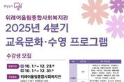 [ 한국미디어뉴스 이보영 기자 ] 성남시는 오는 9월 19일까지 위례어울림종합사회복지관의 120개 강좌 수강생 2896명을 모집한다. 모집은 수영(76개 강좌, 1840명), 교육문화(44개 강좌, 1056명) 등 2개 분야에서 이뤄진다. 수영 분야는 △강습 수영(16회·회당 60명) △아쿠아로빅(4회·회당 60명) △자유수영(8회·정기권 1개월 60명, 일일권 현장접수 20명) 등의 프로그램을 오는 10월 1일부터 12월 31일까지 운영하며, 1인 1강좌만 신청할 수 있다. 교육문화 분야는 유아, 아동, 성인 등 대상별 프로그램을 오는 10월 1일부터 12월 23일까지 운영한다. 유아(5~7세) 대상 강좌는 △창의미술(1회·15명) △영어동화 스토리텔링(1회·15명) 등이다. 아동(8~13세) 대상 강좌는 △한자 자격증반(2회·회당 15명) △바둑·체스(1회·20명) △농구교실(3회·회당 15명) △창의미술(1회·15명) △K-POP댄스(1회·20명) △주산 암산(1회·20명) △로봇 코딩교실(1회·15명) △성장요가(2회·회당 15명) △태블릿 드로잉교실(1회·회당 15명) 등이다