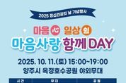 [ 한국미디어뉴스 김서안 기자 ] 양주시보건소와 양주시정신건강복지센터는 정신건강의 날(10월 10일)을 맞아 시민들의 정신건강 인식 증진과 마음건강 회복을 위해 '마음(心) 일상쉼, 마음사랑 함께 데이(마음을 쉬게 하는 하루)'를 개최한다. 이번 행사는 오는 10월 11일 오후 3시부터 7시까지, 옥정호수공원 야외무대에서 진행되며, 남녀노소 누구나 즐길 수 있는 다채로운 공연과 체험 프로그램이 마련되어 있다. ▲ 공연 프로그램으로는 15:00~15:40 어린이를 위한 마술쇼 & 버블쇼, 16:00~17:00 시민들에게 휴식과 위로를 전하는 힐링콘서트(가능동 밴드, 미지니 공연),17:20~19:00 가족과 함께 즐기는 영화(인사이드 아웃 2)를 상영한다. ▲ 체험 프로그램으로는 일상에 지친 마음을 다독이기 위해 다양한 정신건강 체험 부스가 운영되며, 시민들은 △아로마 체험 △환청체험 △우울증 검진 △스트레스 검사 △도박중독예방 두더지게임 △키다리 아저씨 풍선 이벤트 △포토 부스 등 다채로운 프로그램에 참여하여 정신건강의 중요성을 쉽고 즐겁게 체감할 수 있다. 양주시보건소 관계자는 “이번 행사를 통