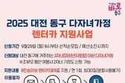 [ 한국미디어뉴스 이보영 기자 ] 대전 동구는 다자녀 가정의 여가활동 지원과 아이 키우기 좋은 환경 조성을 위해 ‘2025년 다자녀 가정 렌터카 지원사업’을 본격 추진, 이달 29일부터 참여자를 모집한다고 밝혔다. 이번 사업은 총 2천만 원의 고향사랑기금으로 추진되며, 신청 대상은 대전 동구에 주소를 둔 3자녀 이상 가정(자녀 중 1명 이상이 미성년인 경우)이다. 단, 2자녀 가정이라도 조부모와 함께 여행 후 증빙사진을 제출할 수 있는 경우 신청이 가능하다. 지원 범위는 9인승 이상 렌터카 대여료이며, 유류비와 하이패스 요금 등 부대 비용은 본인 부담이다. 차량 이용 기간은 오는 10월 1일부터 12월 15일까지이며, 가구당 최대 3일간 이용할 수 있다. 선정된 가정은 쏘카 앱 전용 계정을 통해 우선 결제 후 차량을 이용하고, 청구서와 통장사본 등 증빙자료를 제출하면 익월 10일 이내 이용료를 환급받을 수 있다. 구는 사업 추진에 앞서 지난 22일 국내 모빌리티 플랫폼 ㈜쏘카와 협약을 체결하고, 다자녀 가정이 평일 60%, 주말 50% 할인된 요금으로 카셰어링을 이용할 수