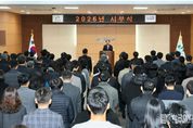 [ 한국미디어뉴스 김풍옥 기자 ] 충북 영동군이 2026년 병오년(丙午年) 새해를 맞아 2일 군청 대회의실에서 시무식을 열고 군정 비전과 목표를 공유하며 새로운 도약을 다짐했다. 이날 시무식에서 영동군수는 신년사를 통해 “2026년은 그동안 준비해 온 성과를 바탕으로 영동군이 한 단계 더 도약하는 전환점이 될 중요한 해”라며 “‘유지경성(有志竟成)’이라는 신년 화두 아래, 뜻을 세우고 끝까지 실천하는 군정을 펼쳐 나가겠다”고 강조했다. 영동군은 ‘2025 영동세계국악엑스포’를 성공적으로 마무리하고, 국립국악원 영동분원 타당성 조사 용역비를 정부 예산에 반영해 분원 유치가 본격화됐다며, 이를 통해 영동이 전국 최고의 국악문화도시로 도약할 탄탄한 기반을 마련했다고 평가했다. 또한 올해 지속 가능한 군정 운영을 위해 △앞서가는 미래 농업 육성 △생동하는 지역경제 활성화 △머무르는 힐링 관광 기반 조성 △감동 주는 맞춤형 복지 확대 △만족하는 열린 행정 구현 등 5대 군정 목표를 중점 추진할 계획이다. 미래 농업 분야에서는 스마트농업 확대 보급과 과수 농업 경쟁력 강화, 농업기계 임대사업장 확충 등을 통