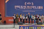 [ 한국미디어뉴스 이보영 기자 ] 경상북도는 22일 영주시 풍기인삼문화팝업공원에서 민족통일협의회 경상북도 주관으로 ‘2025 민족통일 경상북도대회’를 개최했다. 행사에는 김진현 경북도 안전행정실장, 배진석 도의회 부의장, 유정근 영주시장권한대행, 도재영 민족통일 중앙협의회 의장, 박종호 민족통일경상북도협의회장, 김추길 민족통일 전남회장을 비롯한 시군지회 회원 700여 명과 풍기인삼축제현장을 찾은 많은 관광객과 어울려 뜻깊은 행사를 했다. 행사는 식전 공연을 시작으로, 한반도 평화를 위한 결의문을 회원들과 함께 낭독하고, 이어서 지역사회 및 통일 안보에 이바지한 우수 유공자들에게 도지사 표창을 비롯한 다양한 상패가 수여되며 행사 분위기를 한층 고조시켰다. 특히, 행사 마지막에는 참가자 전원이 함께 ‘우리의 소원은 통일’을 합창하며, 평화통일의 필요성과 중요성을 다시 한번 되새기는 뜻깊은 시간으로 마무리됐다. 박종호 민족통일 경상북도협의회장은 대회사를 통해 “확고한 국가관과 투철한 사명감을 바탕으로 민족의 염원인 조국의 평화통일을 실현할 수 있도록 도민들의 적극적인 참여와 성원”을 당부했다. &nbs