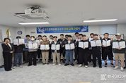[ 한국미디어뉴스 이원영 기자 ] 부산 중구는 2025년 10월 24일 오후 4시 중구 청년마루에서 선박화물 검수원 양성사업 3기 훈련생 19명이 수료식을 마쳤다고 밝혔다. 아울러, 오는 28일부터 ‘㈜미성에스엔피’, ‘(합자)신양선박대행사’ 의 입사 면접이 예정되어 있어 3기 훈련생들은 선박화물 검수원으로 새롭게 도약할 예정이다. 중구청 관계자는 “올해 준비한 선박화물 검수원 양성교육 프로그램들이 모두 마무리 됐고, 3기 훈련생들에게도 앞날에 조금이나마 보탬이 됐으면 한다”며, “이번 수료식이 끝이 아니라 훈련생들 인생의 새로운 시작이었으면 한다”고 3기 수료생들을 응원했다.