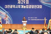 [ 한국미디어뉴스 이보영 기자 ] 대전시의회 김영삼 부의장은 19일 농업기술센터에서 개최된 제29회 대전광역시 후계농업경영인대회에 참석해 농업인 권익 향상과 안정적인 경영환경 조성을 위한 정책적 지원을 약속했다. 이날 행사는 지역을 대표하는 단체·기관장, 후계농업경영인 및 가족 등이 300여 명이 참석한 가운데 우수 후계농업경영인 시상을 시작으로 주요내빈 축사, 기념떡 커팅식 순으로 진행됐고, 개회식이 끝난 뒤 문화·체육행사로 이어졌다. 김영삼 부의장은 “이번 행사가 29번째를 맞이할 수 있도록 그동안 우리 지역 먹거리를 책임지며 농업을 이어가 주시는 여러분의 열정과 헌신에 깊이 감사드린다”면서, “대전시의회는 그동안 청년농업인 육성·지원 조례와 치유농업 육성·지원 조례를 처리하는 등 대전시의 농업 활성화를 위해 노력해왔고, 앞으로도 여러분들의 안정적인 경영과 체계적인 농업발전 기반을 마련해 농촌의 가치가 더욱 높아지도록 최선을 다하겠다”고 말했다.