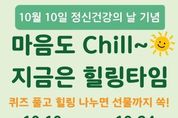 [ 한국미디어뉴스 양선희 기자 ] 부평구 부평정신건강복지센터는 세계 정신건강의 날(10월 10일)을 맞아 10일부터 24일까지 ‘온라인 힐링 캠페인’을 진행한다. 이번 캠페인은 누구나 정신건강의 중요성을 쉽고 재미있게 되새길 수 있도록 기획됐다. 참여자는 포스터 내 큐알(QR)코드를 통해 ▲세계 정신건강의 날 관련 퀴즈 풀기 ▲스트레스 해소 방법 공유 ▲‘나만의 소울OO(장소·노래·음식 등)’ 작성하기 등 설문에 응답할 수 있다. 센터는 오는 31일 설문에 참여한 선착순 200명에게 편의점 상품권(기프티콘)을 증정할 계획이다. 허휴정 센터장은 “이번 캠페인은 구민들이 일상 속에서 정신건강의 의미를 되새기고, 스스로를 돌보는 방법을 공유하는 기회가 될 것”이라며 “앞으로도 구민들의 정신건강 증진을 위해 다양한 사업을 이어가겠다”고 말했다.