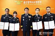 [ 한국미디어뉴스 이원영 기자 ] 울산소방본부는 화재·구조·구급·행정 분야에서 탁월한 업무 성과를 거둔 소방공무원 4명이 2025년 업무유공으로 지난 11월 1일자로 1계급 특별승진했다고 밝혔다. 특별승진의 주인공은 각종 재난 현장에서 시민의 안전을 지키기 위해 헌신한 박우범, 김민수, 김민희, 김진구 소방관이다. 이들은 각자의 자리에서 시민의 생명과 안전을 지키기 위해 헌신해 왔으며, 재난 현장과 행정업무에서 우수한 대응능력과 전문성을 인정받아 이번 특별승진자로 선정됐다. ▲박우범 소방교는 각종 화재현장에서 신속하고 체계적인 진압활동으로 화재 분야 공로를 인정받아 소방교에서 소방장으로 ▲김민수 소방교는 다양한 재난현장에서 인명구조 활동으로 인명피해 최소화에 기여한 구조 분야의 공로를 인정받아 소방교에서 소방장으로 1계급 특별 승진한다. ▲김민희 소방장은 감염병 대응 및 고품질 구급서비스 제공, 응급처치 교육 등 구급 분야 공로를 인정받아 소방장에서 소방위로 ▲김진구 소방장은 불조심 어린이마당, 119소방동요대회 등 화재예방안전 행정 분야에서 공로를 인정받아 소방장에서 소방위로 1계급 특별승진 한