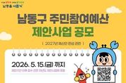 [ 한국미디어뉴스 김만길 기자 ] 인천시 남동구는 주민이 직접 지역에 필요한 사업을 제안하고 예산 편성에 참여할 수 있도록 ‘2026년 주민참여예산 제안사업 공모’를 오는 5월 15일까지 진행한다고 2일 밝혔다. 주민참여예산제도는 예산의 편성부터 집행, 결산까지 전 과정에 주민이 참여하는 제도로, 재정 운영의 투명성과 건전성을 높이고 주민 의견을 구정에 반영하기 위해 운영되고 있다. 참여 대상은 남동구민뿐만 아니라 남동구 소재 직장인과 단체까지 포함되며, 제안은 남동구 누리집을 통한 온라인 신청과 함께 사업 제안 신청서를 작성해 우편·팩스·방문으로도 가능하다. 이번 공모는 일상생활 속 불편 해소와 지역 문제 개선을 위한 공공성 있는 사업을 대상으로 하며, 제안사업은 건당 최대 5억 원 이내에서 신청할 수 있다. 다만 예산이 수반되지 않거나 법령 및 예산편성 기준에 맞지 않는 사업, 특정 단체 지원 또는 특정 제품 홍보를 목적으로 하는 사업, 단순 행사·축제성 사업, 중장기 계획이 필요한 사업 등은 공모 대상에서 제외된다. 접수된 제안사업은 관련 부서의 타당성 검토와 주민참여예산위원회