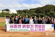 [ 한국미디어뉴스 김서안 기자 ] 양평군 서종면은 지난 17일 오후 1시, 서종면 문호리 968 일대 문호천 생태공원에서 ‘서종면 흙향기 맨발길’ 임시 운영을 기념하는 걷기 행사를 개최했다. 이번 행사는 서종면장을 비롯해 지역 기관·단체장, 각 마을 이장, 주민 등이 함께 참여해 맨발로 자연을 체험하며 건강 증진과 소통의 의미를 나누는 시간으로 진행됐다. ‘서종면 흙향기 맨발길’은 하늘에서 바라보면 서종면의 ‘서’ 자를 형상화한 걷기 코스로, 문호천의 아름다운 자연경관과 어우러진 생태 친화형 산책길이다. 특히, 약 1,500평 규모에 만개한 코스모스 꽃밭은 행사 당일 주민들과 방문객들의 눈길을 사로잡으며 큰 호응을 얻었다. 이날 걷기 행사에는 지역 주민은 물론 외부 관광객들도 참여해 지역에 활기를 불어넣었으며, 가을 정취를 물씬 느낄 수 있는 코스모스 경관과 생태공원이 어우러진 맨발길은 서종면의 새로운 관광 명소로 자리매김할 것으로 기대된다. 홍주표 서종면장은 “흙향기 맨발길은 주민과 관광객 모두가 자연 속에서 치유와 여유를 느낄 수 있는 서종면의 새로운 명소”라며, “앞으로도 지속적인 정비와 편
