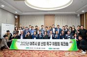[ 한국미디어뉴스 이보영 기자 ] 여주시는 지난 20일 여주 썬밸리 호텔 3층 크리스탈룸에서 ‘2025년 여주 쌀 산업특구 위원회 워크숍’을 개최했다고 21일 밝혔다. 이번 워크숍에는 조정아 부시장을 위원장으로 이충우 여주시장, 박두형 여주시 의회의장, 박시선 부의원, 정병관 의원, 진선화 의원 및 특구 위원 약 40여명이 참석하여, 1~4차 위원회 논의 결과를 공유하고 쌀 임의자조금 도입 방안 등 향후 여주시 쌀 산업 발전 방향을 집중 논의했다. 워크숍 주요 일정은 농촌지도자연합회 김현태 회장으로부터 대왕님표 여주쌀 브랜드 활성화방안, 농관원여주사무소 김재식 소장으로부터 양곡관리법 개정사항 안내, 통합RPC 신동민 대표로부터 여주시 쌀 임의자조금 조성논의 발표 후 위원들을 대상으로 여주쌀 발전을 위한 심화토론의 시간을 가졌으며, 심화토론은 1조 합리적인 수매가격 결정 방안, 2조 여주쌀 품종과 쌀 생산이 나아가야 할 방향, 3조 유통 및 마케팅 분야 활성화 방안, 4조 쌀 임의자조금 여주시 접목 방안을 주제로 열띤 토론을 실시했다. 아울러 여주시 쌀 산업특구 위원회는 전국 유일의 쌀 산업 특구로