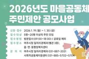 [ 한국미디어뉴스 이원영 기자 ] 여주시가 2026년 마을공동체 주민제안 공모사업 관련하여 사업설명회를 개최한다. 이번 설명회는 공모사업에 대한 주민들의 이해를 높이고, 공모사업 참여를 희망하는 공동체가 보다 원활하게 공모를 준비할 수 있도록 마련했다. 사업설명회는 2026년 1월 19일 14시 여주시 사회적공동체지원센터(여주시 세종로14번길 18, 중앙프라자 5층) 소회의실에서 진행된다. 2026년 여주시 마을공동체 주민제안 공모사업 참여를 희망하는 신청예정자 참석 가능하며, 주요 내용으로는 ▲ 경기도 마을공동체 이해교육(동영상 시청) ▲ 2025년 여주시 마을공동체사업 성과보고 ▲ 2026년 여주시 마을공동체 주민제안공모사업 설명 ▲ 질의응답 등이 포함된다.