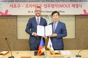 [ 한국미디어뉴스 이보영 기자 ] 서울 서초구는 지난 26일 구청 5층 대회의실에서 체코 프라하 6구와 문화, 예술, 교육 분야 등 상호 교류 우호증진을 위한 우호도시협정 양해각서(MOU)를 체결했다고 밝혔다. 프라하 6구는 체코 프라하에서 가장 넓은 행정구역으로, 바츨라프 하벨 국제공항과 체코 공과대학교, 각국 대사관과 주체코 한국대사관이 위치하고 있다. 또 한인 교민이 가장 많이 거주하는 지역으로 서울시 25개 자치구 중 가장 안전하고 살기 좋은 도시로 알려진 서초구와 많은 공통점을 지닌 도시다. 이번 협약을 위해 지난 6월 말 전성수 구청장을 비롯한 대표단은 체코 프라하 6구를 방문해 야쿱 스타렉 구청장과 간담회를 갖고 문화·교육 등 다양한 분야에서 지속 가능한 협력 방안을 폭넓게 논의한 바 있다. 구는 이번 협약을 계기로 프라하 6구와의 교류를 본격적으로 확대해 한·체코 간 미래지향적 파트너십 구축에 기여해 나간다는 계획이다. 또 이번 방문 기간 중 프라하 6구 대표단은 9월 27일부터 28일까지 열리는 서초구 대표축제인 ‘서리풀뮤직페스티벌’에 참여한다. 아울러 양재천에 설치된 ‘바츨라프