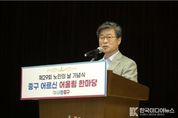 [ 한국미디어뉴스 이보영 기자 ] 서울 중구가 제29회 노인의 날(10월 2일)을 기념해 지난 2일 중구 구민회관 대강당에서 기념식과 함께 어르신 어울림 한마당을 열었다. 이날 행사에는 어르신과 내빈 등 500여 명이 참석해 어르신들에 대한 노고에 존경과 감사를 표했다. 1부에서는 노인 복지와 지역 발전을 위해 헌신하신 65세 이상 모범어르신 3명과 노인복지 기여자 9명, 기여 단체 1곳에 표창이 수여됐다. 2부 행사에서는 초대가수 축하공연과 어르신 장기자랑이 펼쳐졌다. 어르신으로 구성된 11팀이 무대에 올라 노래와 악기 연주 실력을 뽐내며 흥겨운 시간을 만들었다. 김 구청장도 '고맙소'라는 노래를 불러 어르신들의 호응을 얻었다. 행사장 로비에는 영양 건강 체험 부스가 마련되어 어르신들이 드신 식사의 칼로리와 나트륨양 등을 직접 계산해보고 균형잡힌 식사법에 대한 상담도 받을수 있었으며, 추척사진관 부스에서는 교복을 입고 사진을 찍으며 옛 추억을 떠올렸다. 행사에는 한국삭도공업주식회사, 대신자산신탁, 한마음라이온스, 중구자원봉사센터를 비롯한 여러 업체와 기관이 경품, 기념품, 간식 등을 후원해 더욱