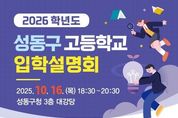 [ 한국미디어뉴스 이보영 기자 ] 서울 성동구는 오는 10월 16일 오후 6시 30분부터 성동구청 3층 대강당에서 고등학교 진학을 앞둔 학생과 학부모를 대상으로 ‘2026학년도 고등학교 입학설명회’를 개최한다고 밝혔다. 이번 입학설명회는 예비 고등학생과 학부모를 대상으로 고교학점제에 대한 이해를 높이고, 지역 내 일반계 고등학교별 입학 정보를 제공하기 위해 성동구와 성동광진교육지원청(교육장 이긍연)이 공동으로 마련한 자리이다. 설명회는 ▲ 1부 고교 진학 대비 특강(강사: 성북강북교육지원청 송치경 장학사) ▲ 2부 성동구 학교별 입학설명회 및 1:1 상담(경일고, 금호고, 도선고, 무학여고, 성수고, 한대부고)으로 진행된다. 1부 특강은 송치경 장학사가 ‘고교 학점제와 대학 입시의 이해·전략’이라는 주제로 강연을, 2부 학교별 설명회는 각 학교의 입학 담당교사가 학교별 특성, 교육 운영 과정, 진로 진학 전략 등을 안내할 예정이다. 특히 학교별 1:1 상담은 설명회 당일 오후 6시부터 참석자 대상 선착순 현장 접수하며, 학교별 입학 담당교사가 맞춤형 개별 상담으로 진행할 예정이다. 설명회는 9월