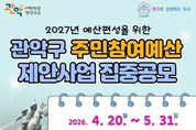 [ 한국미디어뉴스 이보영 기자 ] 관악구가 지역사회 문제를 해소하고 주민 편익을 증진하기 위해 ‘2026년도 주민참여예산사업 및 협치의제’ 공모를 실시한다. 구는 주민참여예산제와 선도적 민관협치 프로세스인 ‘협치회의’를 운영하며 주민과 함께 구정 발전을 도모하고 있다. 올해 역시 주민의 목소리를 구정에 적극 반영하고자 오는 4월 20일부터 5월 31일까지를 집중 공모 기간으로 정하고 다양한 제안 사업을 모집한다. 이에 앞서 구는 지난 3월 25일과 26일 이틀간 ‘모두를 위한 참여·자치·협치 공론장’을 개최한 바 있다. 공론장은 5개의 주제별 테이블(▲지역경제/일자리 ▲복지/돌봄/사회적약자 ▲문화/교육 ▲교통/안전 ▲도시/환경)로 운영됐고, 주민 295명이 참여해 총 212건의 생활밀착형 과제를 제안하며 뜨거운 관심을 보였다. 구는 이번 집중공모기간 중 주민참여예산제를 더욱 홍보하고 활성화하기 위해 4월 20일부터 5월 15일까지 21개 동에서 ‘동 주민참여예산회의’를 개최한다. 동 주민이라면 누구나 참여할 수 있으며, 각 동의 특수성을 살린 지역 맞춤형 특화사업을 발굴할 예정이다. 이외에도 사