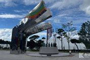 [ 한국미디어뉴스 김풍옥 기자 ] 영동세계국악엑스포조직위는 영동세계국악엑스포 개막과 함께 행사장 내에 설치된 상징 조형물‘전통의 울림, 미래를 울리다’의 제막식을 26일 개최했다. 이날 제막식에는 국악 엑스포 공동위원장인 정영철 영동군수, 윤영달 크라운해태 회장을 비롯해 민의식 국악 엑스포 집행위원장, 신현광 영동군의회 의장 등 주요 내빈이 참석해 자리를 빛냈다. 국악엑스포 상징조형물은 복합문화예술회관 옆에 높이 6미터, 세로 8.7미터, 가로 6.7미터 규모로, 금속 조각가 심병건 작가가 제작했다. ‘ㄱ’자 기울기에서 가장 맑은 소리를 내는 115도로 깎는 편경을 모티브로 하여 제작된 기학학적 구조의 세 개의 기둥은 국악이 지닌 맑고 청아한 울림을 형상화한다. 또, 음의 파동과 리듬으로 시각화된 율관과 한국 고유의 정체성을 의미하는 오방색 띠로 열린 세계를 향해 뻗어 나가는 에너지를 나타낸다. 세 개의 기둥과 함께, 중앙의 상단에 편종과 편경을 의미하는 파이프를 조형하여 ‘울림과 진동’이 이곳에서 시작되어 세상에 울려 퍼져나감을 표현했다. 16개의 편종은 관람객들이 각각
