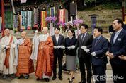 [ 한국미디어뉴스 김서안 기자 ] 남양주시의회는 9일 남양주시 진접읍 봉선사 큰법당에서 열린 1056주년 개산대제 및 운허체 배포식에 참석했다. 운허체는 운허스님이 생전에 직접 쓰신 발원문의 육필을 토대로 남양주시와 봉선사가 함께 운허스님의 가르침과 정신을 현대적으로 계승하기 위해 개발했으며, 한글 2,350자와 특수문자 451자가 붓글씨체 폰트로 제작됐다. 이날 행사는 매년 진행되는 봉선사 개산대제와 더불어 한글날을 맞아 진행한 운허체 배포식으로 특별한 의미를 더했으며, 조성대 남양주시의회 의장을 비롯해 이정애 부의장, 이경숙 복지환경위원장, 김지훈(국) 의원, 김동훈 의원, 이수련 의원, 김상수 의원 및 홍지선 부시장, 국회의원 및 도의원, 불자와 시민 등 500여명이 참석한 가운데 개최됐다. 먼저, 개산대제 행사는 부전스님의 명종을 시작으로 △개회선언 △삼귀의례 △우리말반야심경 순으로 진행됐으며, 이후 열린 운허체 배포식은 △제작 경과보고 △발원문 현수막 제막 △봉선사 주지 호산스님의 봉행사 △두산일면 대종사, 여산암도 대종사의 치사 △축사 순으로 진행됐다. 조성대 의장은 축사를 통해“불교