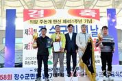 [ 한국미디어뉴스 이종철 기자 ] 장수군은 지난 23일 장수종합경기장에서 개최된 의암주논개 탄신 제451주년 기념 제58회 장수군민의 날 기념식·제57회 장수군민 체육대회를 성공리에 마무리했다. 장수군민의 날 기념식과 장수군민 체육대회는 우리 군의 대표적인 역사 인물인 의암 주논개의 정신을 되새기기 위해 주논개 탄신일인 음력 9월 3일에 맞춰 해마다 개최된다. 이날 행사는 최훈식 군수를 비롯해 최한주 장수군의회 의장과 의원, 관내 기관·사회단체장, 지역주민, 선수단 등 1,000여 명이 참석하여 그 의미를 더했다. 기념식은 식전공연을 시작으로 △선수단 입장식 △국민의례 △군민헌장 낭독 △시상(군정발전유공자 표창, 장수군 명예군민증 수여, 장수군민의 장) △기념사 및 축사 △논개상 추대자 소개 순으로 진행됐다. 수상자는 지역의 명예를 드높이고 지역 발전에 앞장서 온 정연길(이티바이오텍 대표), 이수민(NH농협 장수군출장소장) 씨에 대한 군정발전유공 시상이 이뤄졌으며 김준오 NH농협 전 장수군지부장은 장수군 명예군민증을 수여 받았다. 또한 제43회 장수군민의 장 수상자인 문화체육장 오재영