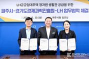 [ 한국미디어뉴스 이원희 기자 ] 파주시는 30일 경기도경제과학진흥원, 한국토지주택공사 경기북부지역본부와 경과원 파주시 이전에 따른 엘에이치(LH) 공공임대주택 생활관 지원을 위한 업무협약을 체결했다고 밝혔다. 이번 협약은 경과원의 단계적 이전에 앞서 직원들에게 안정적인 정주환경을 제공함으로써 거주지 이전에 따르는 비용 부담을 최소화하기 위한 세 기관간 협력을 강화하는 차원에서 추진됐다. 협약에 따라 한국토지주택공사는 운정신도시 내 공공임대주택 중 보유 공실 일부를 생활관 용도로 활용할 수 있도록 공급 방안을 검토하고, 파주시는 입주 절차와 행정적 지원을 담당한다. 경과원은 대상자 선정과 운영 관리 등 내부 절차를 마련해 실제 입주가 차질 없이 진행될 수 있도록 준비할 계획이다. 김경일 파주시장은 “이번 협약이 파주에 둥지를 틀게 될 경과원 직원들이 걱정 없이 생활할 수 있는 실질적인 지원이 될 것으로 기대한다”라고 말했다. 김현곤 경기도경제과학진흥원장은 “직원들의 주거 부담을 줄이는 것은 이전 성공의 핵심 요소”라며 “세 기관이 함께 만들어가는 협력체계가 앞으로도 좋은 모델이 되길 바란다”라고 전했다. &n