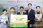 [ 한국미디어뉴스 이보영 기자 ] 대구 달서구(구청장 이태훈)는 대구광역시사회복지협의회와 이마트로부터 추석맞이 명절키트 100세트(약 700만원 상당)를 기탁받았다고 29일 밝혔다. 이번 나눔은 복지 사각지대 해소와 한가위 이웃사랑 실천을 위해 마련됐다. 김석표 회장은 “달서구의 어려운 이웃들이 풍성한 명절을 보낼 수 있도록 작은 힘을 보태고자 했다”며 “앞으로도 이마트와 함께 지속적인 사회공헌 활동을 이어가겠다”고 말했다. 이태훈 달서구청장은 “어려운 여건 속에서도 따뜻한 나눔을 실천해 주신 대구광역시사회복지협의회와 이마트에 감사드린다”며 “소중한 후원품을 필요한 가정에 신속하고 투명하게 전달하겠다”고 전했다.